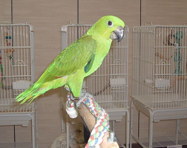 Goffin’s Cockatoos are a smaller cockatoo that is white with pink highlights in front of the eyes and on the breast. They are one of the better talkers among the cockatoos. They are easy to teach all kinds of tricks. Cockatoos in general are a very loving type of bird that needs a lot of attention from their owners. Buy a cockatoo only if you can spend a lot of time with it.